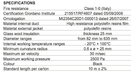 PRODUCT MANUFACTURE: ALMA P-Flex Iso V is flexible thermo-insulated ducting with ALMA P-Flex ducting on the inside. It is lined with 25 mm thick glass wool insulation and is covered on the outside with plastic jacket to give an excellent vapour-barrier and prevent condensation forming.